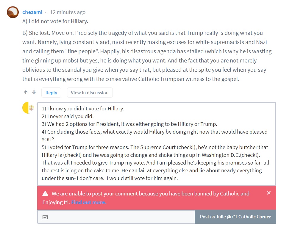 Many years ago, I was banned from commenting on “Catholic and Enjoying It.” Since, I have self-eliminated. I may go back if he would limit his misguided diatribes to 50 or less words. Is he paid by the word count?