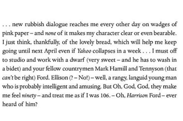 “A refurbished Star Wars is on somewhere or everywhere. I have no intention of revisiting any galaxy. I shrivel inside each time it is mentioned. Twenty years ago, when the film was first shown, it had a freshness, also a sense of moral good and fun. Then I began to be uneasy at the influence it might be having. The bad penny first dropped in San Francisco when a sweet-faced boy of twelve told me proudly he had seen Star Wars over a hundred times. His elegant mother nodded with approval. Looking into the boys eyes I thought I detected little star-shells of madness beginning to form and I guess that one day they would explode.