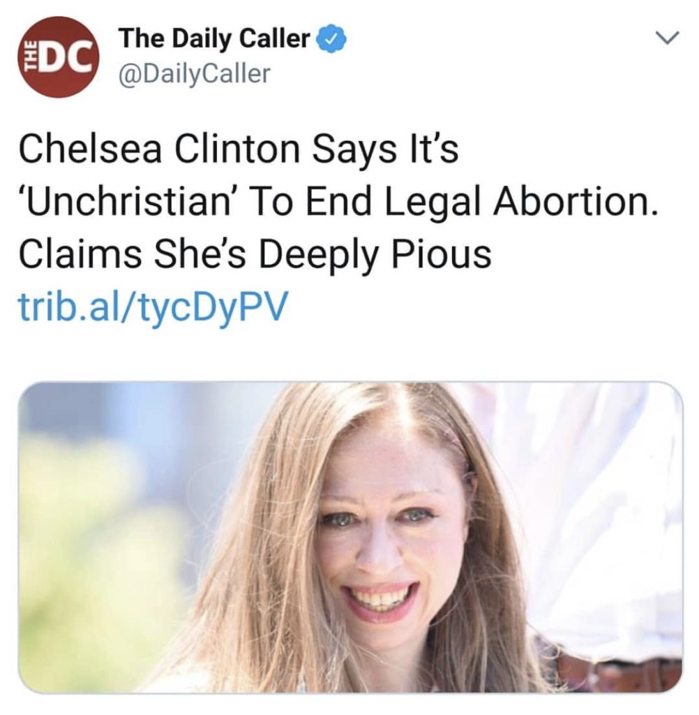 I am a teacher and I said nothing against Chelsea when she was a child and even reproved some who did, but this is irrational babble from a reputed adult. So a Christian (her word) must set aside Biblical teaching if it conflicts with her politics? The polite answer would be to note an inversion in the order of goods. The less polite answers are either rank stupidity or cynical opportunism. Since she is a Clinton, I leave the reader to choose.