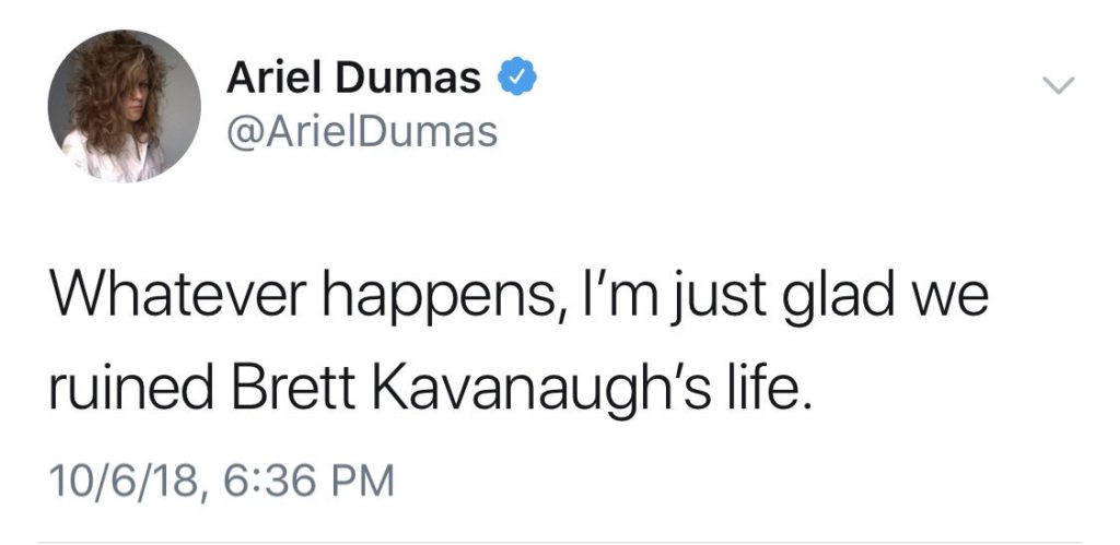 Ariel is one of the Archangels. No, Ariel, you did not ruin Bret Kavanaugh’s life. Perhaps maybe in your dreams but no, not in the public square, nor in my mind. You just made your self look like a jackass.