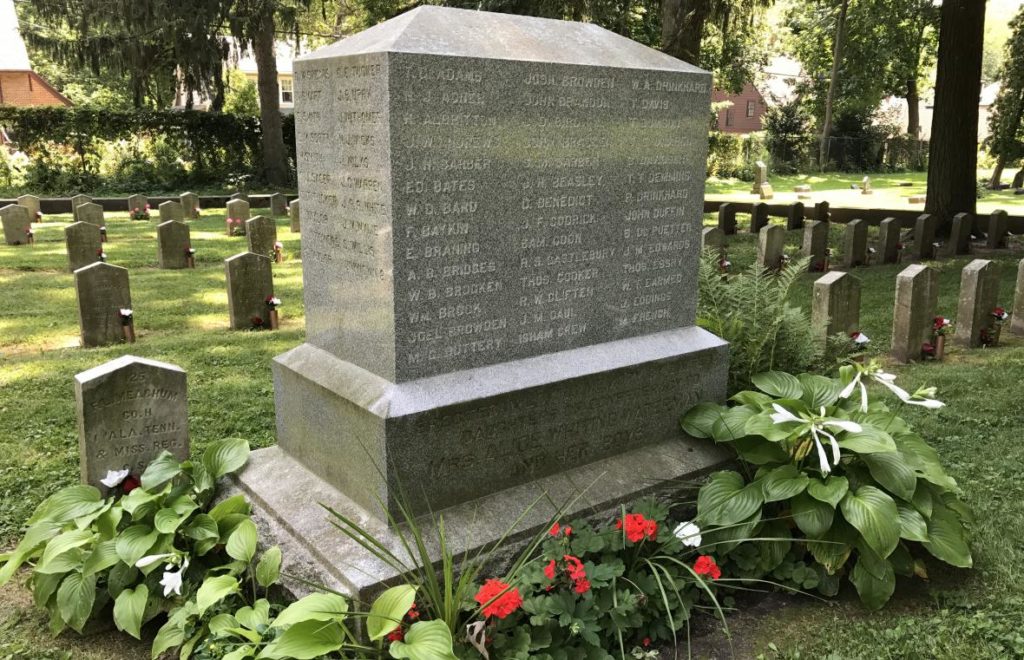 These are Americans who died as prisoners of war. “They die off like rotten sheep,” said a Union soldier who worked at the camp, where conditions were bad. The “monument” is a tombstone large enough to feature the names of each of the dead. This is not a statue of a Confederate war hero. It is simply a grave marker noting the names of POWs who died far from home.