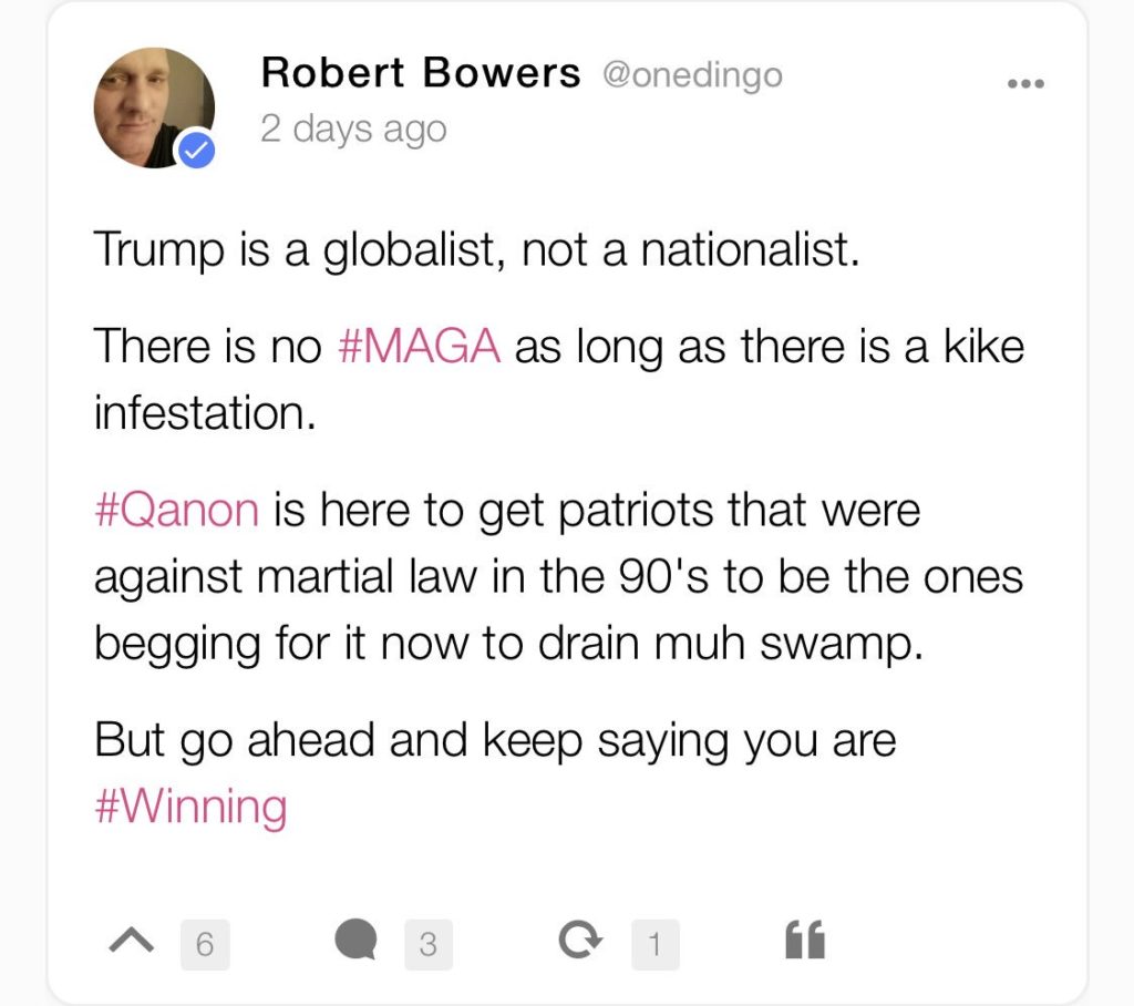 As I posted elsewhere, So the synagogue murderer in Pennsylvania yesterday – Robert Bower – is a Trump hating anti-Semite who put to death 11 people. And the wacko nit wit who sent dud bombs to Democratic politicians last week is a Trump lover. Trump isn’t the problem. We are. Luke 13:1-7