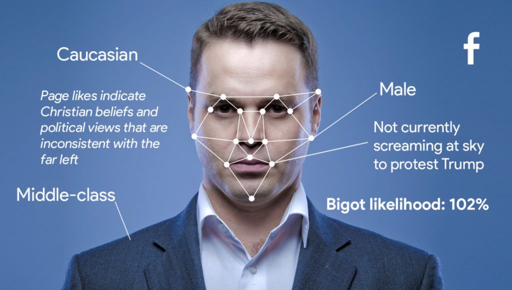 “We’re looking for key indicators of bigotry, like being white, believing in God, and holding any political position to the right of Stalin,” Mark Zuckerberg said at the event. “Our algorithm has been trained to flag and remove offensive people who aren’t welcome on our platform: straight, cisgendered males, conservative people, and of course, Christians.”