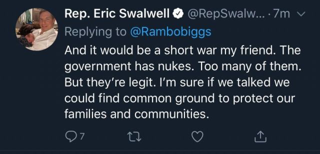 The Founding Fathers, in all they did, struggled to pass on the blessings of liberty to their posterity.  Ensuring that the American people would remain, in the words of a British officer during the Revolution, “a people numerous and armed”, was one part of the safeguards that they gave us against tyranny.  That Mr. Swalwell, a member of Congress, does not understand this is to be deplored.  That more than a few Americans join him in his blindness is a shame, and a danger, for our time.