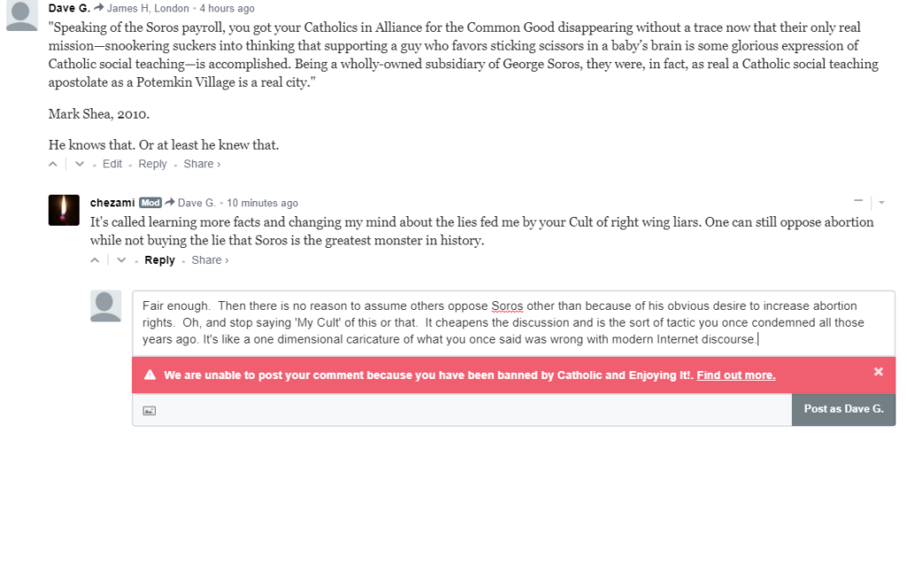 There is no point in engaging with people like Mark Shea. It is like wallowing in the mud with pigs, as the old saying goes. You end up getting filthy dirty and the pig enjoys the whole thing. To make everyone aware of his asininity and ridiculousness, it’s best to use your own blogs and FB posts and Twitter pages where he cannot (and dare) engage in debate lest by so doing he is revealed in the light of day to be the mindless agent and puppet of godless effeminate liberalism.