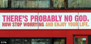 If we understand God to be the ultimate source of “The Good”, “The Beautiful” and “The True”, or more precisely, Goodness itself, Beauty itself and Truth itself, then the sign above becomes nonsensical and perhaps sarcastic. It would read: “There’s probably no Goodness or Beauty or Truth…enjoy your life.” Really? How would we do that?