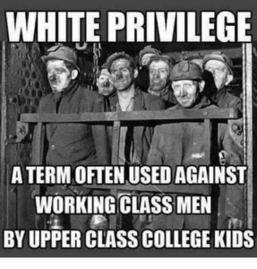 70 yrs ago.. my wife was born and raised in a chicken coop in California … Now that’s white privilege ! She had no shoes for her first few years and had to take a shower in a shed with slimy slugs attached to all the walls…. yes it had a dirt floor too don’t you know! I’d call that white privilege. Soon the chicken coop burned down… the family moved on wandering for a bit… I guess that wreaks of white privilege… right ? hmmm .. 20 yrs gone by and she opened a welding school… trained ex-cons and poor inner city folks and went on to become a $millionaire$. Bought a real home, a motor yacht and the like… But I have a question?? … is that still white privilege?