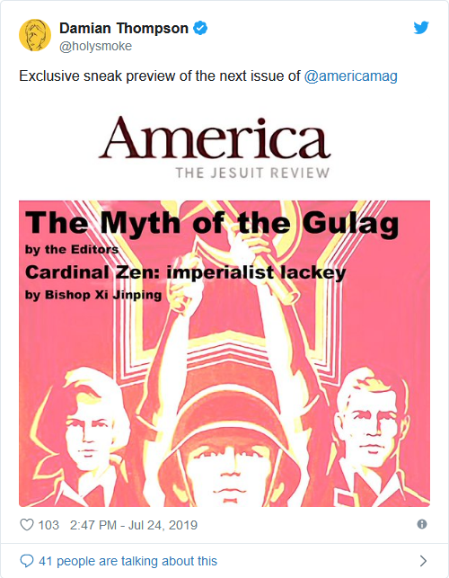 When you make yourself running dogs of the communists, expect to be mocked. If a reactionary like Fr. Malone doesn’t like it, I guess he just needs to be a little more open minded. Maybe a short stint in a reeducation camp will do the trick. If that doesn’t work, I’m sure some other method will now that America Mag has blessed communist playbook.