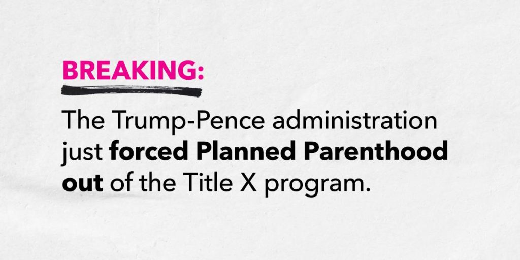 “Today, we are announcing that due to an unethical and dangerous gag rule, the Trump administration has forced Planned Parenthood grantees out of Title X — the nation’s program for affordable birth control and reproductive health care,” Planned Parenthood acting president Alexis McGill Johnson said in a media call today. “Our affiliate grantees will be submitting letters saying as much to HHS today.”