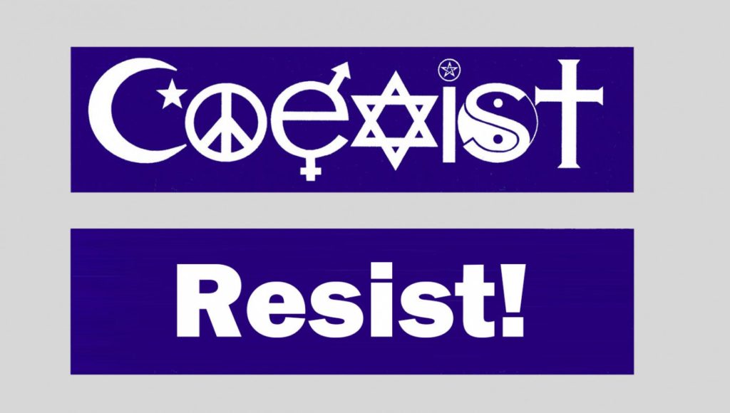 “If a liberal is in office, all is well—therefore, it’s time to use the Coexist sticker to remind people that we can all get along despite our differences,” said Lou Panderson, CEO of Mandatory Tolerance. “Once a Republican gets into office, it’s on: flip that baby over to RESIST! to show people you will not stop screaming at the sky until peace and order is restored in our land.”
