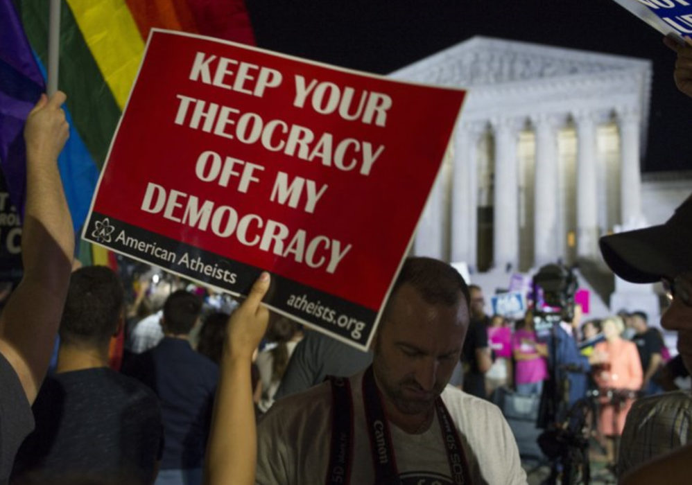 The sign should read, “Keep Your Theocracy Off My Hypocrisy.”