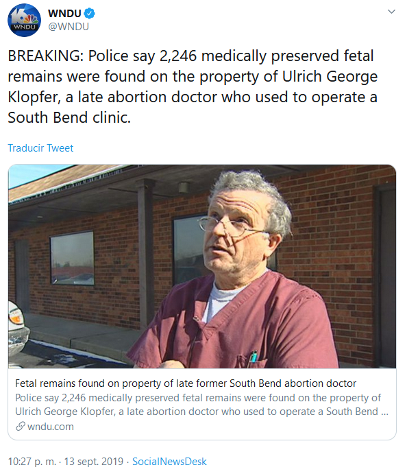 Police say 2,246 medically preserved fetal remains were found on the property of Ulrich George Klopfer, a late abortion doctor who used to operate a South Bend clinic.