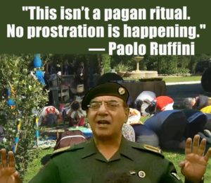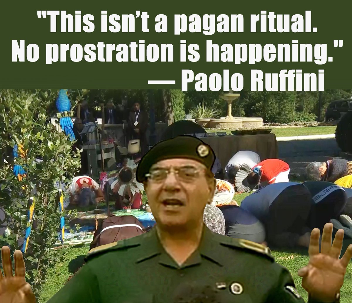 Haha..Take a look at the background in the photo, “This isn’t a pagan ritual. No prostration is happening”.- Paolo Ruffini. Right, so maybe it’s not prostrating in the technical sense like at Holy Orders ordinations, but if it’s not that then the group must be bowing to Mecca.
