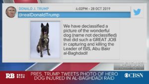 My understanding is that rather than face the dog, the terrorist detonated a suicide vest he was wearing, and killed himself and three small children with him. The dog was injured but recovered quickly and is reported to be back on duty. Fortunately this terrorist – Abū Bakr al-Baghdadi – has now faced his Creator and Judge before whom he will answer for his crimes. Sadly three innocent children are also dead. If the terrorist had any real courage, then he would have spared the children by facing the dog rather than detonating the vest bomb. Likely, though, the dog would still have sent him to Jesus.