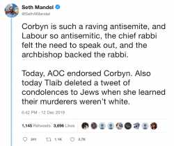 Rep. Rashida Tlaib said in a statement, “People didn’t turn up to the polls across the pond because Corbyn and his brave freedom fighters were too conservative. Labour really should have gone off the deep end, like we’re doing with the Democratic Party.”
