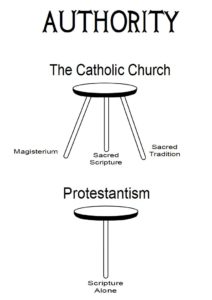 It’s different in Catholicism. There are three pillars to guide the Church to Truth: Sacred Scripture, Sacred Tradition and the Magisterium. Skeptics can disagree all they want, but at least Catholics avoid certain logic conundrums found in other denominations.