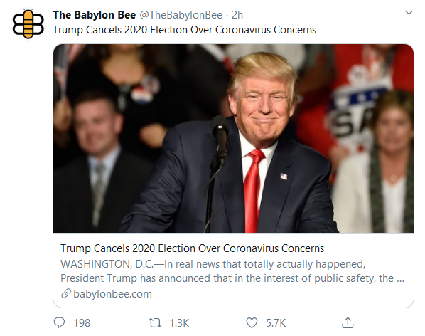 WASHINGTON, D.C.—In real news that totally actually happened, President Trump has announced that in the interest of public safety, the 2020 presidential election has been canceled.