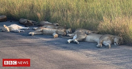 Sleeping, what a relief. At first glance it looked like a lion pride had been killed since they were strangely lined up. Second thought it’s a nice picture. Nice departure from graphs of gloom and doom. thank you.