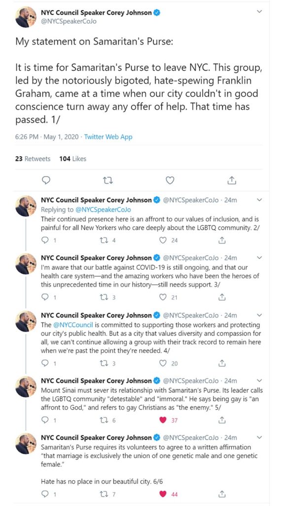I’m surprised Franklin Graham wasn’t called out for his targeting of Jews. Oh wait…that was Mayor DeBlasio. My bad.