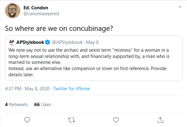 Oh, and “side piece” still works, and has the advantage of being gender-neutral, so as not to offend the delicate sensibilities of those who pretend to care deeply about things like that.