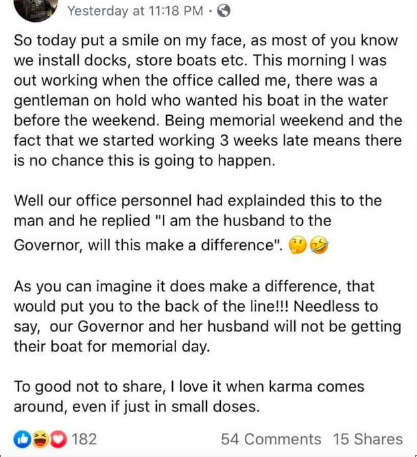 ‘This morning I was out working when the office called me, there was a gentleman on hold who wanted his boat in the water before the weekend,’ the post read.