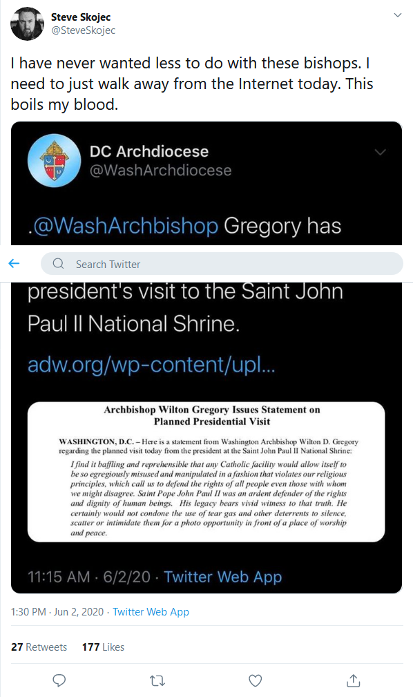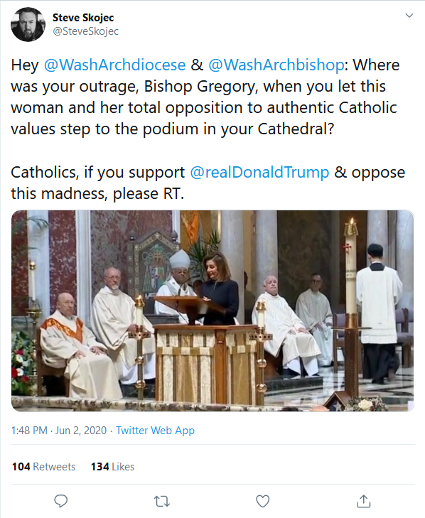 Pelosi? And he blasts Trump? What is wrong with the US Bishops? Personally I wouldn’t expect him to object if Pelosi visited to give respects at the shrine, though she is Catholic, and that’s a bit different. But Clinton or Bush or Obama, that’s fine. Let them come. What’s wrong with him?