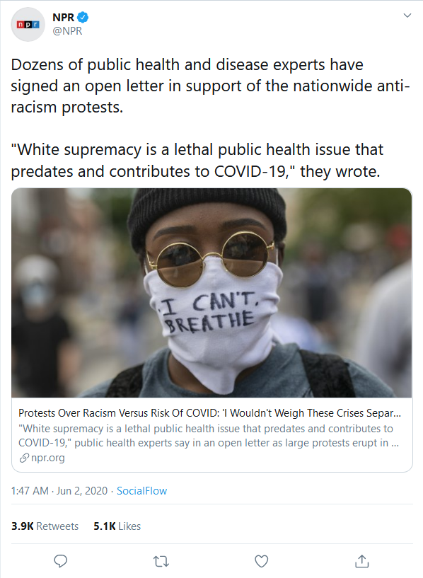 “‘I think you can absolutely argue that a likely high-risk group of individuals all gathering in close quarters have a high risk of propagating the virus,’ said Davidson, whose group did not track protesters at the police brutality protests across Michigan over the weekend.”