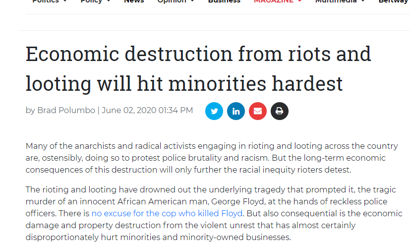 Go here to read the rest. The stupidity, it burns. Those who have stoked race hatred for fun and profit, and, above all, politics, will now see a bonanza in increases in influence from all this, with large corporations falling all over themselves to pay protection money donations to the evil, and Orwellian, Black Lives Matter group. And the ordinary poor black people who suffer from all this? Well, one would have to be brain dead by this time not to understand that the race hustlers never have given a damn about them in any case.