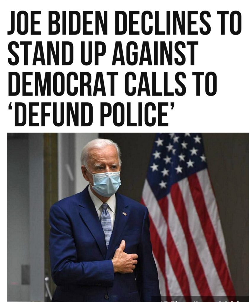 Defunding the police?! Hopefully Biden will endorse. Great issue for Trump.