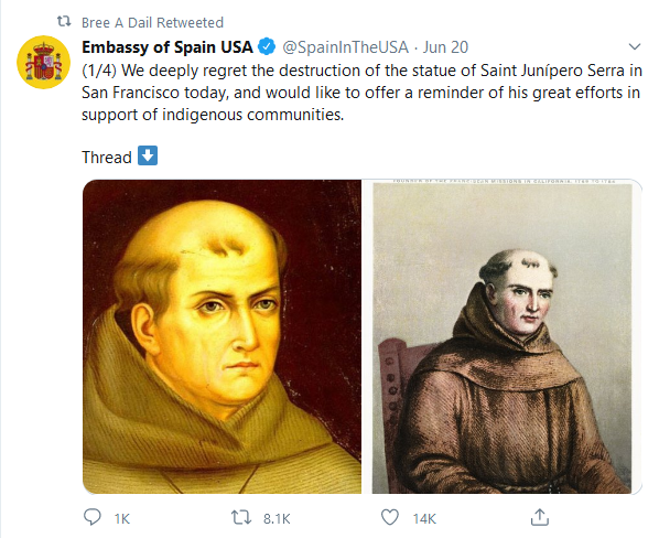 Actually, yesterday somebody vandalized Saint Junipero’s statue in his own hometown of Palma. The virus is clearly very contagious.