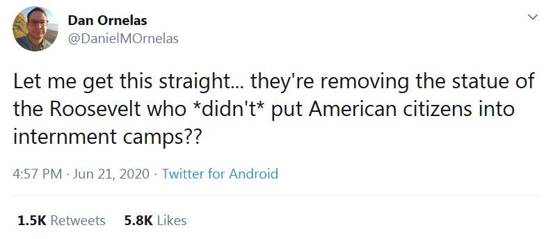 Hold that thought about FDR. This won’t stop until it is stopped. This is about more than just ‘let’s remove a few statues.’ As my sons said, this is about making what we’ve watched for the last three months permanent.