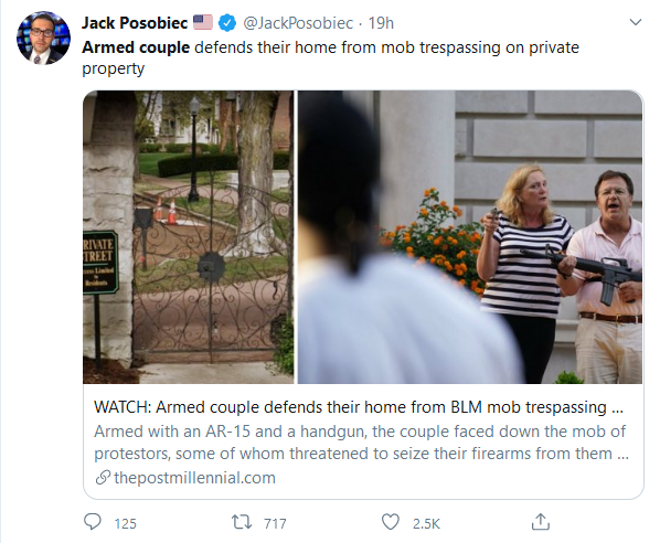 FYI, it was discovered that the armed couple are staunch democrat supporters, attorneys even representing some BLM clients.