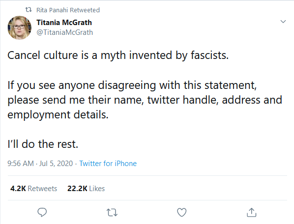 What I want to know is how many folks retweet “her” in all seriousness.