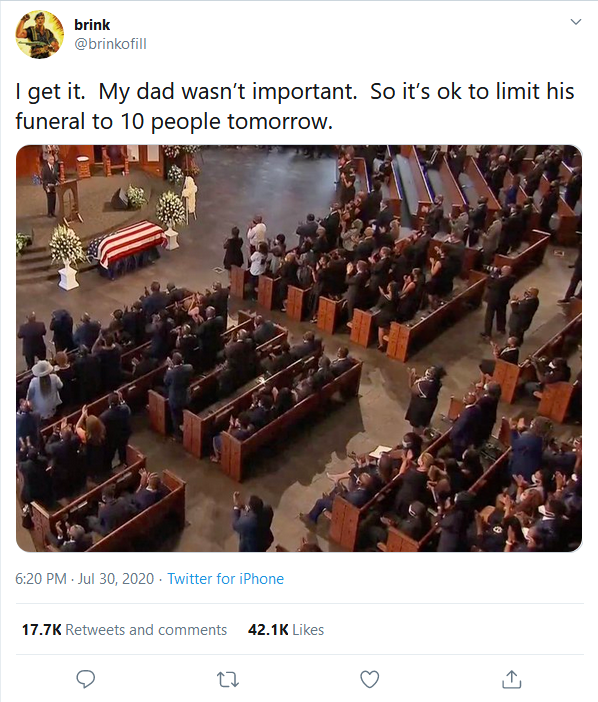 The unspoken theme of the John Lewis funeral.  Leftists always make sure that the rules they proclaim will not apply to them.