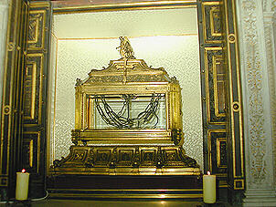Such was the veneration of the faithful for the relics of the apostles SS. Peter and Paul, deposited at Rome, that the popes themselves durst not presume to touch, separate, or give away part of the precious remains of their bodies. This St. Gregory the Great often testifies in his epistles. 4 Pope Hormisdas assures us of the same in his letter to Justinian, nephew to the Emperor Justin I., and afterwards his successor, who had begged a small particle of them for a church he was building to their honour at Constantinople. 5 Both these popes testify that it was the custom for the popes only to put down a linen cloth, called Brandeum, upon the tomb of the apostles, which being thus blessed was sent and received with the respect due to a relic; and God often worked miracles by these Brandeums. Justinian was satisfied with such a relic, and with the reasons of respect for the sacred bodies alleged by the pope. His ambassadors at the same time begged and obtained a small portion of St. Peter’s chains, which were kept at Rome with great devotion in the ancient church which is known by that title, at least ever since the fifth century. The popes were accustomed to send the filings of these chains as precious relics, to devout princes, and they were often instruments of miracles. The pope himself rasped off these filings, which he enclosed in a cross or in a golden key, as appears from St. Gregory, 6 who says in his letter to King Childebert, 7 to whom he sent one of these keys, that many persons, out of devotion, hung such keys about their necks as preservatives from dangers. St. Cæsarius says, 8 that the chains, with which this apostle was bound in his last imprisonment before his martyrdom, were preserved by the faithful, and honoured at Rome in his time. Arator, subdeacon of the church of Rome, who composed a poem on the Acts of the Apostles, in the reign of Justinian, says, that Rome was also enriched with one of the chains with which that apostle was bound by Agrippa at Jerusalem, and from which the angel delivered him. St. Chrysostom affirms the same, and expresses the most earnest desire to have been able to go so far to see and kiss that relic of this great apostle’s glorious sufferings. 9 It is said, that Eudocia, the wife of Theodosius the Younger, in 439, brought from Jerusalem two chains with which St. Peter had been bound in that city, and having given one to a church in Constantinople, sent the other to Rome to her daughter Eudoxia, who was married to Valentinian III., and who is said to have built a church on the Esquiline hill, in which it was deposited. 10