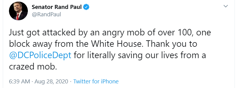 Thursday night felt like being in a terrifying dystopian novel. The mob swarmed me and my husband, Sen. Rand Paul, in a tight circle, screaming expletives, threats, and shouting, “Say her name.” We rushed up to two police officers, and I believe that is the only thing that kept us from being knocked to the ground. Even pressed against the officers, we were greatly outnumbered.