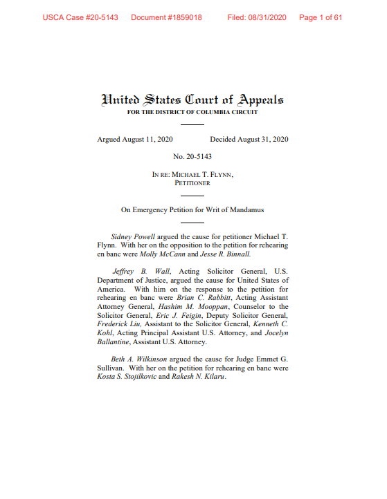 The DC Circuit in its en banc review reversed its panel and remanded the case back to Sullivan. Go here to read the decision. The DC Circuit is now allowing Sullivan to proceed as both trial court and prosecutor. Appalling if not surprising, as the Democrats have a heavy majority on the DC Circuit and the rule of law these days for Democrats have to bow before Orange Man Bad.