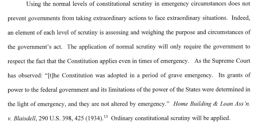 • A stay-at-home order as implemented violated the Due Process Clause.