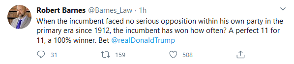 The question: how many MORE people hate Trump as much as the media hates Trump? The same people I know who hated Trump in 2016 hate him now. The same people I know who voted for him (either reluctantly or enthusiastically) can’t wait to vote for him again. And I think those who are positively excited about voting are more likely to influence someone on the fence. It’s one thing to say, “Trump’s my guy and here are his accomplishments and why you should vote for him” and quite another to convince someone who doesn’t hate Trump that they should. As we discovered in 2012, “I’m not Obama” wasn’t enough to carry the election for Romney. And Romney, bland and uninspiring as he was, was at least able to stay up past 9 am.