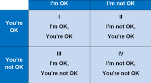 The following relates to this kind of mindset. It’s based off something we were shown where I work during the time of a merger many years ago. At that time, various departments were blaming most other departments for just about everything. Upper management broke-down this kind of thinking into four quadrants of “OK” and “Not OK”. As you might imagine, we were all challenged to examine ourselves to see how we can improve and to consider the possibility that our reality was represented somewhere near the center of the four quadrant space shown below.