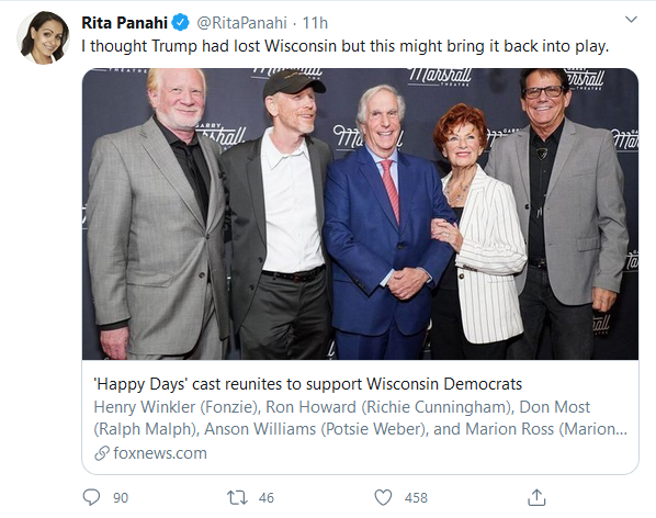 Ah, the raw political power of actors and an actress from a forgotten sitcom of four decades ago.