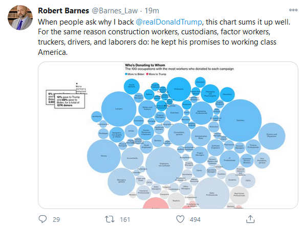 Long before he became President, Trump was known as the Blue Collar Billionaire. He has loyalty among workers without college degrees that I haven’t seen since Reagan. Blue collar is my family background and I have never forgotten it. Too many American politicians pay lip service to American workers during elections and then promptly forget them until the next election. Trump has been different. Everything he has done has been aimed at improving the American economy for those workers who have been shortchanged for decades. That is why he is drawing rock star crowds, and why they will troop to the polls in huge numbers tomorrow and vote for him.