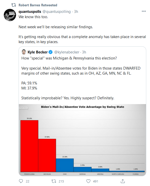 When I try to push back against 1.) with highly suspicious voter patterns or 2.) with the fact that Trump’s total vote total is far too high to be consistent with a scenario where his base stayed home I just get the response “Well on the evening news they said something different…”