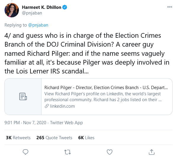 Never heard of him?  You will.  He was the Director of the Electoral Crimes branch of the Department of Justice: