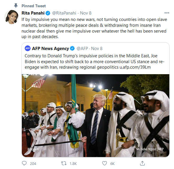 It’s really a shame that if the Democrats take the White House, all of President Trump’s hard work brokering progress towards peace in the Mideast will be strangled in the crib.