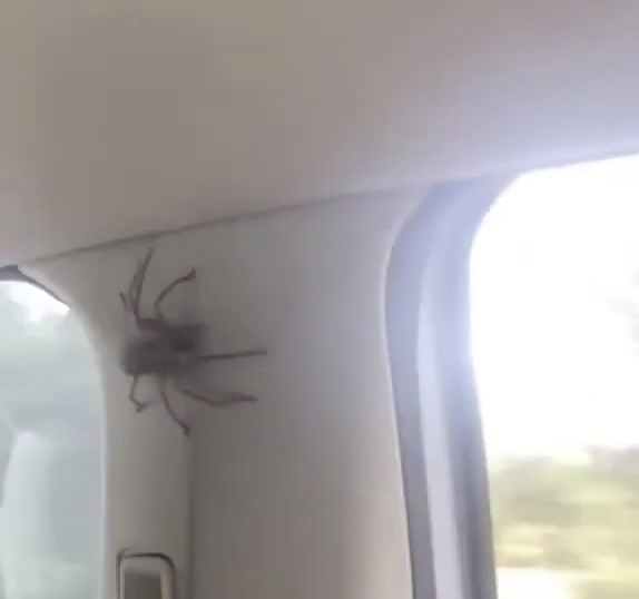 “Kept on filming” but not long enough. I feel cheated. Where’s the finale? Did the driver pull over or open a window to brush the spider outside? Hopefully the girls are okay.