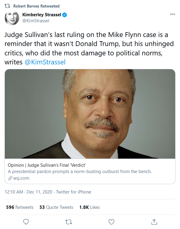 The Flynn case ends with a 43 page graceless rant by Inspector Javert Judge Sullivan, upset that the pardon ends his bizarre attempt to be both Judge and Prosecutor.  That this farce was allowed to go on so long demonstrates the amount of corruption in our judicial system.