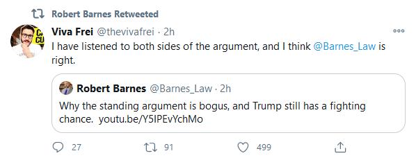 Viva Frei and Barnes dissect the dismissal of the Texas suit. Barnes notes, correctly, that standing is a device made up by the Court in 1922 and used by the Court haphazardly since then whenever the Court simply does not want to address an issue.