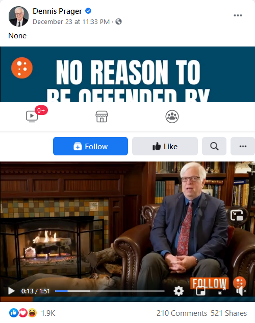 His dog steals the video. If only all Catholics defended Christianity half as vigorously as Mr. Prager.