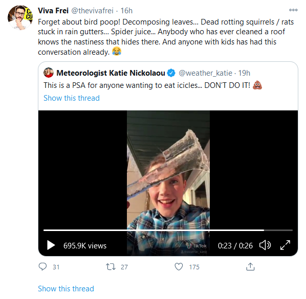 This is a PSA for anyone wanting to eat icicles… DON’T DO IT! 💩 pic.twitter.com/5h9el3ZH72